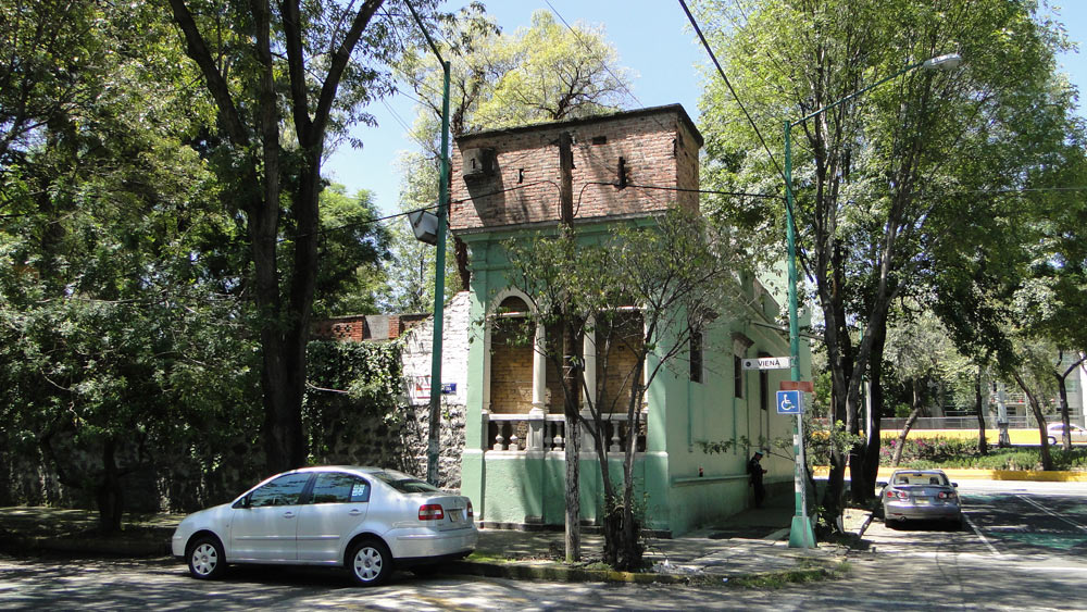 El jardín, el monumento, y la casa de Trotsky (visto desde la