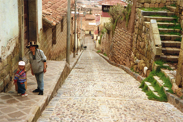 Comenzando la subida hacia Sacsayhuaman. Todavía por las calles