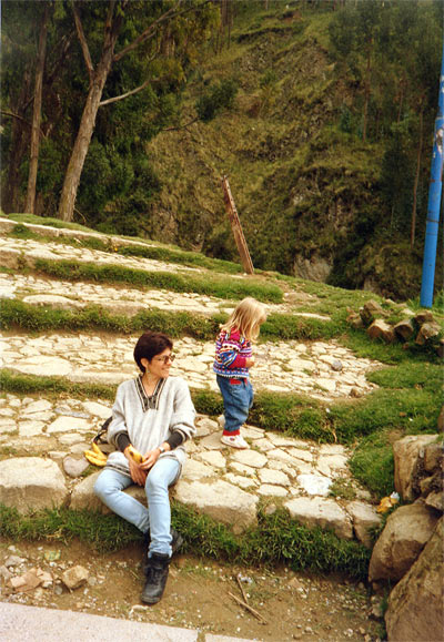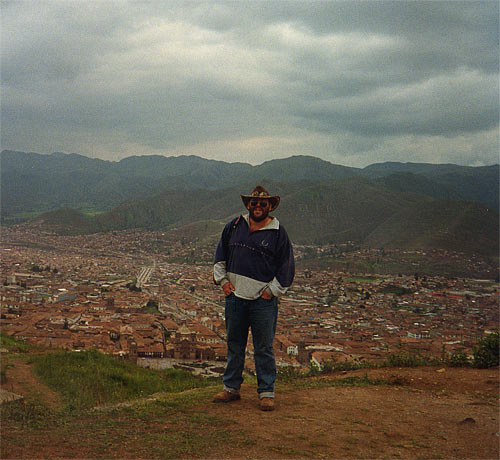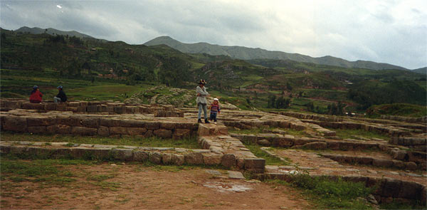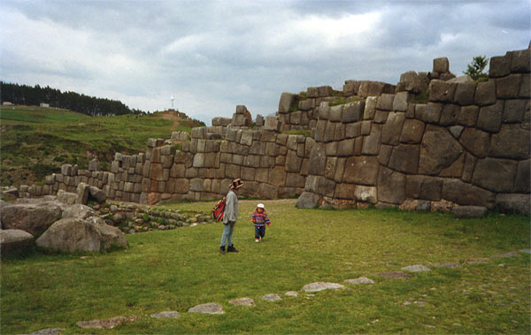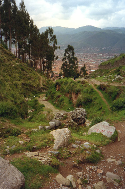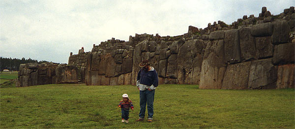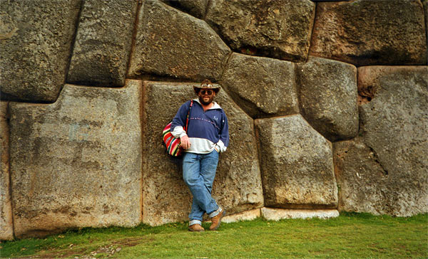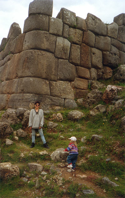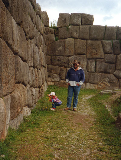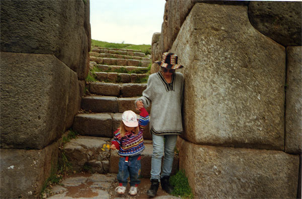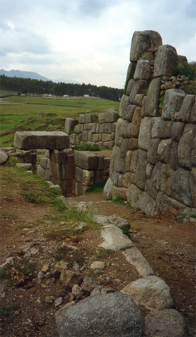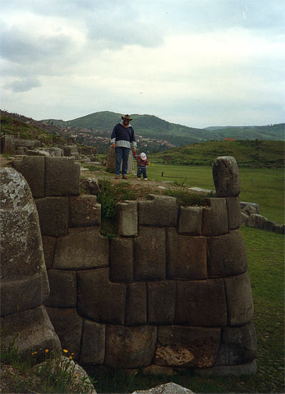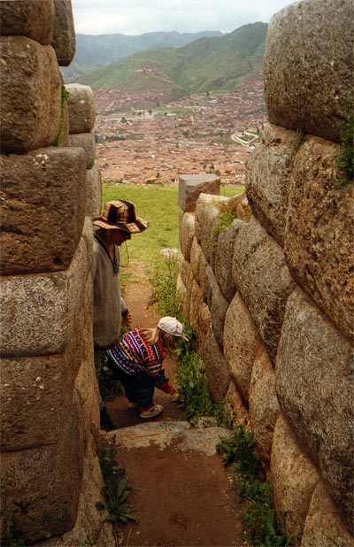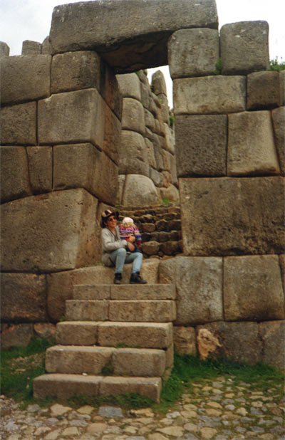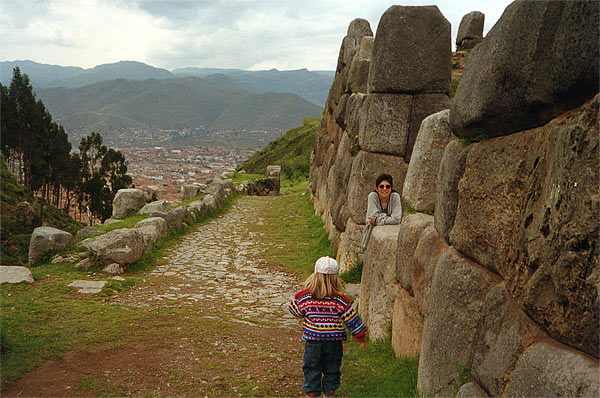 En la puerta Rumi Punku. Al fondo, la ciudad de Cusco. Las ruinas