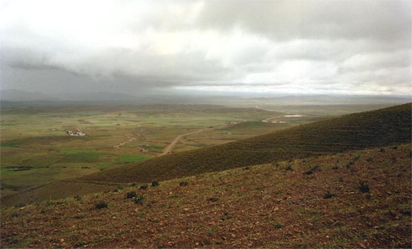 Vista del altiplano y la ruta de La Paz a Tiwanaku