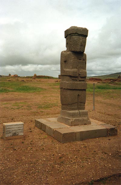 Tiwanaku o Tiahuanaco es el nombre de una cultura preincaica que se extendió alrededor del lago Titicaca (ver mas sobre Tiwanaku en Wikipedia). En particular, también lleva ese nombre las ruinas de una ciudad conocida como la "Ciudad del sol" o "Ciudad de los Dioses", situada en Bolivia, a un altura de 3844 metros sobre el nivel del mar, a mitad de camino entre el lago Titicaca y la ciudad de La Paz (ver más información aquí y aquí).)