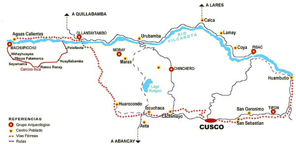 El Valle Sagrado de los Incas se extiende a lo largo del río Vilcanota (el mismo que aguas abajo toma el nombre de Urubamba o Willcamayu). Abarca el área comprendida entre los pueblos de Písaq y Ollantaytambo. Aguas arriba, se llega a Machu Picchu, a pie por el camino del Inca, o en tren hasta Aguas Calientes