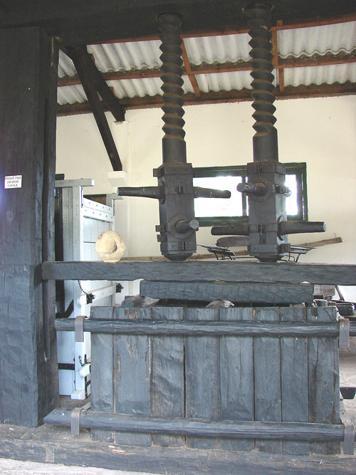 Una prensa de lana, con el "adorno" de un nido de hornero