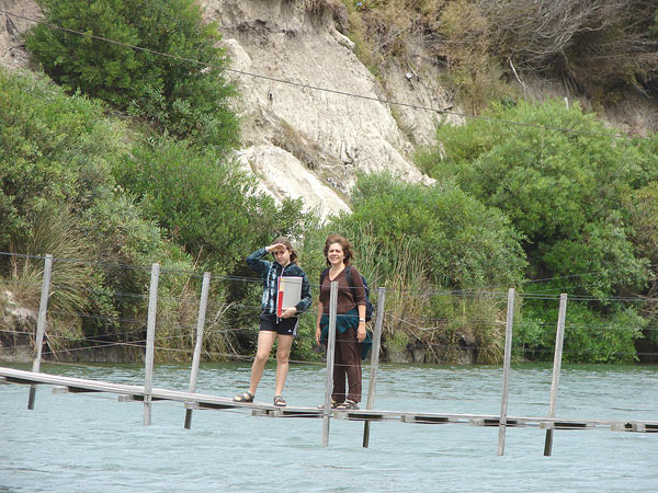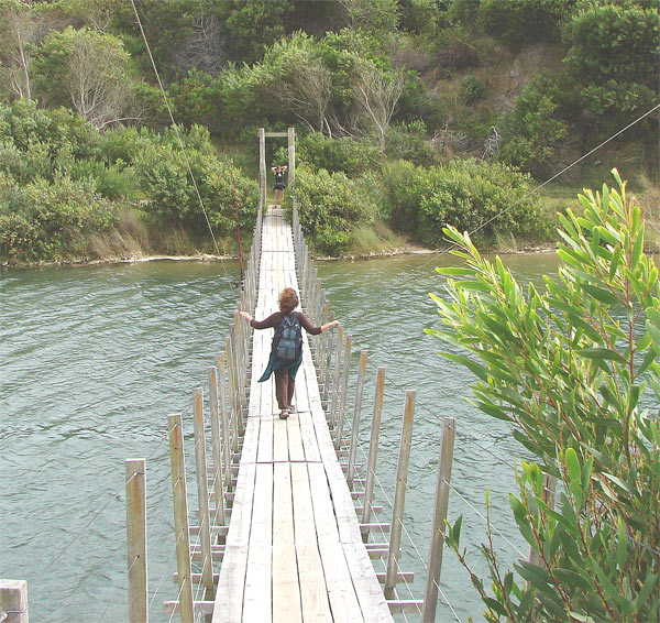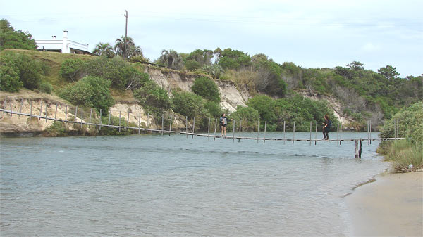 Cruzando el puente colgante, hacia La Coronilla