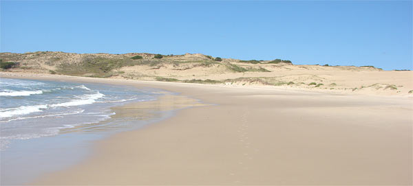 Vista de la playa Grande del Parque Santa Teresa, que da hacia Punta del Diablo (hacia el sur)