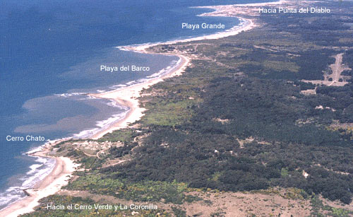 Vista de las playas, desde el Cerro Verde hacia el norte (es decir, La Coronilla)