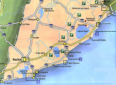 Mapa de los balnearios del Departamento de Rocha.A continuación, algunas fotos de: