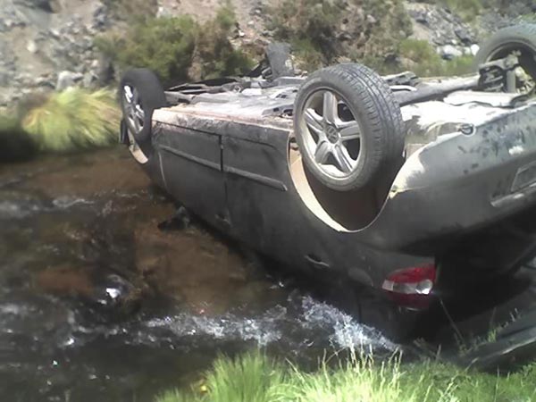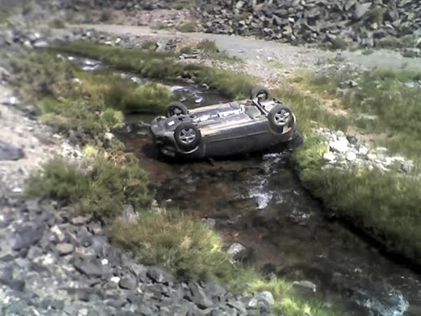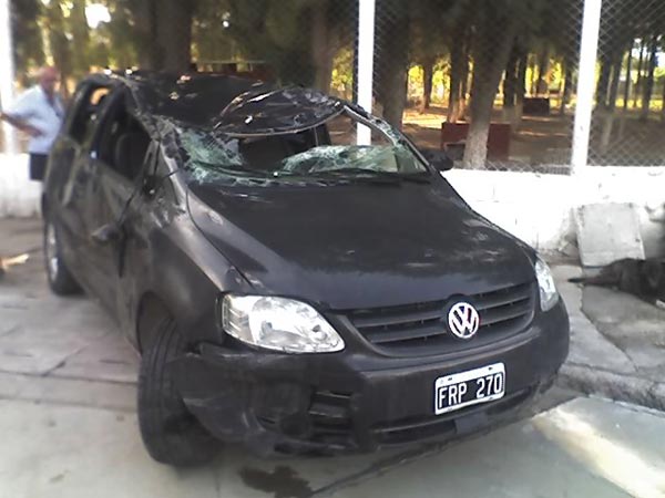 Al otro día del accidente, cuando fuí con la grúa a recoger el auto, saqué estas fotos del auto, con el celular (la cámara digital ya había sucumbido en el arroyo)