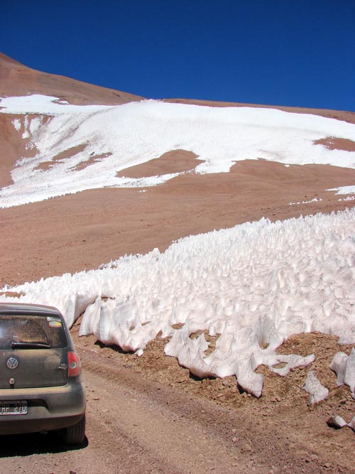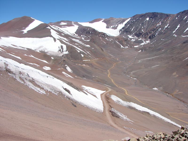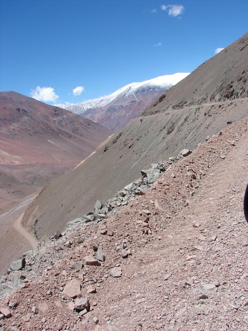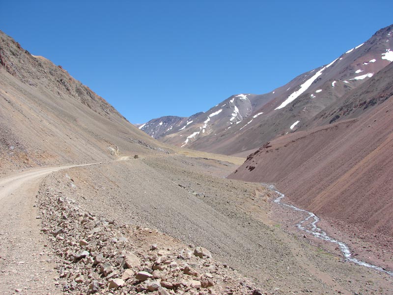 Este camino de ripio cruza la cordillera de los Andes. El limite con Chile se encuentra a unos 4700 mts de altura, y el recorrido, en el puesto de Gendarmeria comienza a los 3000 mts