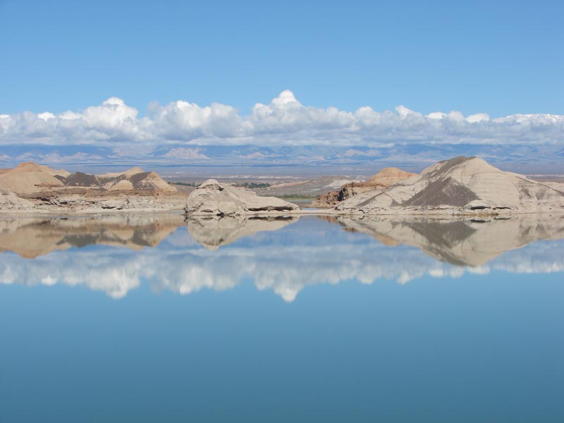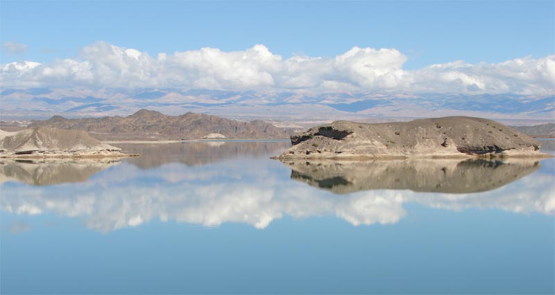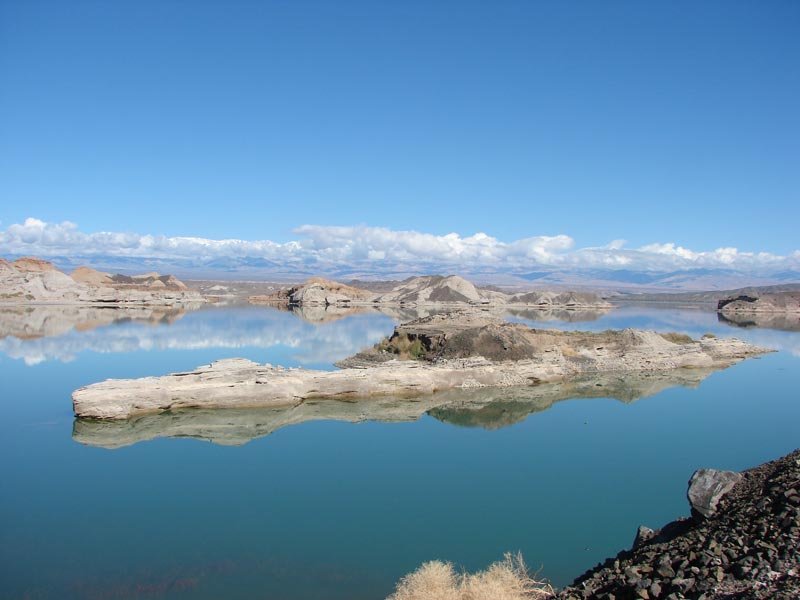 Este dique es un espejo plano de mañana. Pero a la tarde comienza a soplar un viento fuerte y se transforma en el paraíso de los practicantes del windsurf
