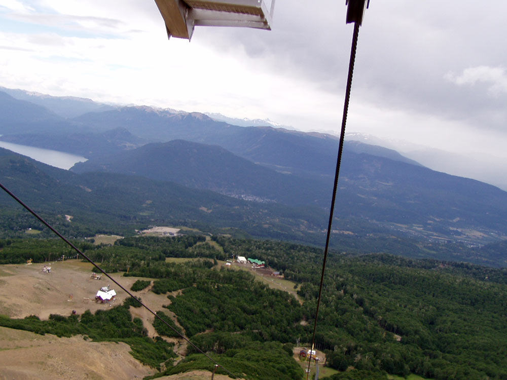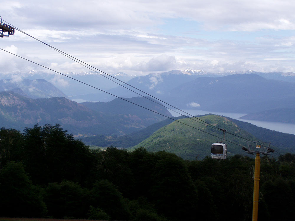 Teleférico de subida a Chapelco. Al fondo, el lago Lacar, y la