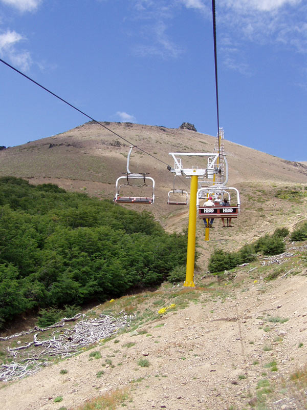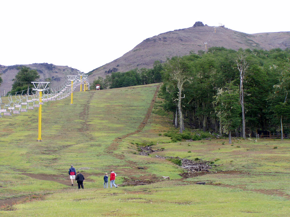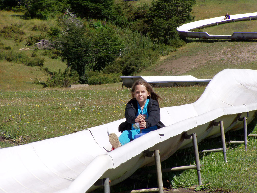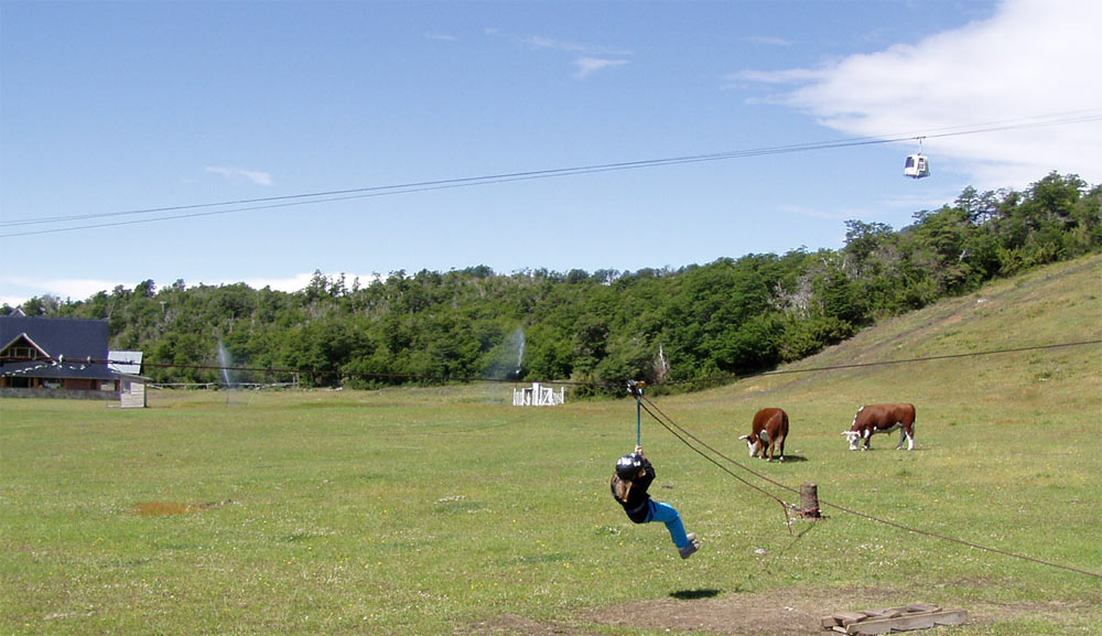 Una pequeña tirolesa en la base de Chapelco (a la derecha se ve