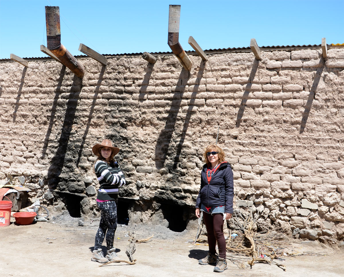 Diana y Nora frente a los hornos desde donde calientan la sal para su secado