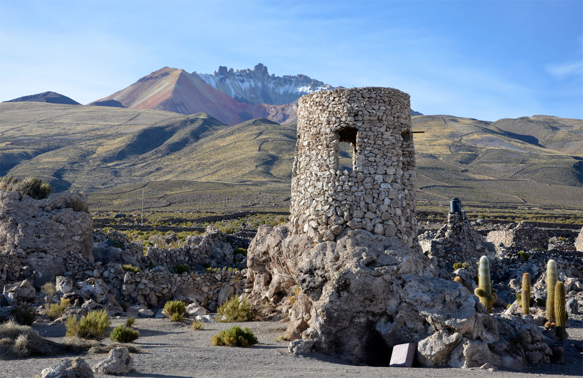 Tambo Coquesa, Volcán Tunupa y atardecer en el Salar